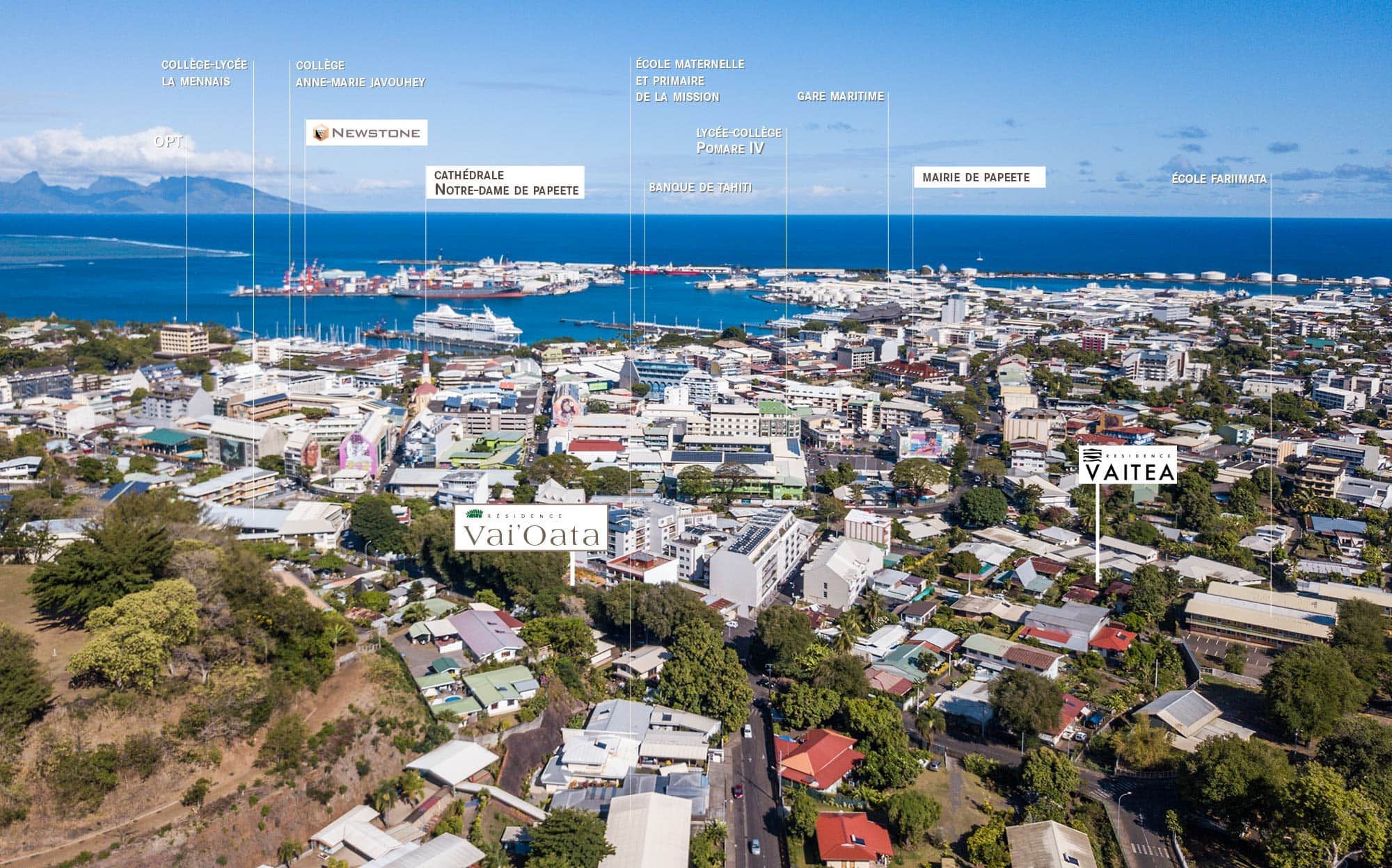 La résidence Vaitea se situe dans un quartier familial et paisible, dégageant une ambiance sereine et une douceur de vivre. Elle se trouve à proximité des écoles, collèges et lycées, ainsi que de nombreux petits cafés et commerces. Elle se compose de 31 appartements allant du studio au 4 pièces.
